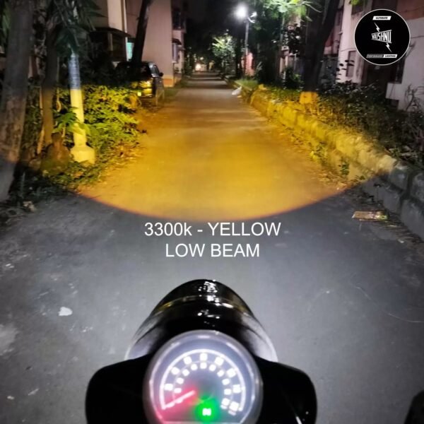 However, with the Introduction of the VAISHNU Projector Headlights we are Offering the same Power of Auxiliary Lights in your Headlight Unit without any added Lights asking for unwanted Attention. Moreover, These Headlights have 3 Color Beams all in 1 Unit which makes it a Perfect All Weather Companion for Riders. It offers Yellow Lights for Rains/ Fogs, It offers Warm White for Color Temperatures more close to Daylight & at Last it has Pure White Beam as well that really Brightens the path on any Dark Patch of Road.